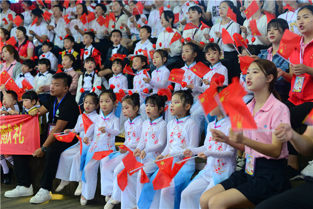 愛國主義情懷教育是思想政治教育的重要內(nèi)容,也是每一個人貫徹一生必修的功課。此次活動的第一個環(huán)節(jié)就是“童心向黨·紅歌拉歌”方陣唱響活動,文藝匯演開始前,小朋友們按不同的方陣圍坐在高蓋山兒童劇場內(nèi),高唱紅歌,歌聲陣陣,感人肺腑,場面十分壯觀。