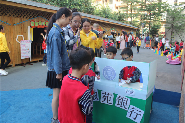 為了貼近生活,幼兒園還設(shè)立了美墩苑銀行,每一位小朋友每天可以前往銀行領(lǐng)取10元錢(qián),用于各類(lèi)商品、服務(wù)的消費(fèi),真是太貼心了!他們的吆喝聲、笑聲劃過(guò)天際,回蕩在幼兒園陽(yáng)光微灑的早晨里。此刻的游戲屋仿佛成了生活一條街,每一個(gè)檔口都在上演生動(dòng)而有趣的故事,讓前來(lái)觀(guān)摩的客人老師們都目不暇接、贊嘆不已。