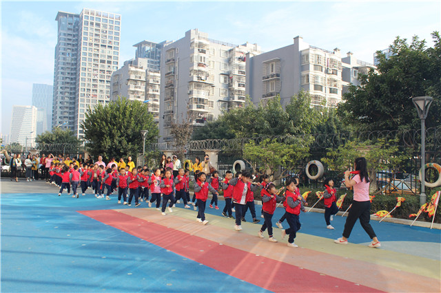 隨著早操音樂(lè)的響起,小朋友們紛紛迅速而有序地將各類(lèi)游戲道具收拾歸整、脫下“職業(yè)裝”,向操場(chǎng)轉(zhuǎn)移。只聽(tīng)音樂(lè)聲一轉(zhuǎn),小朋友們便排成了整齊的隊(duì)伍,踏著一致的步伐,開(kāi)始了一天的早操。