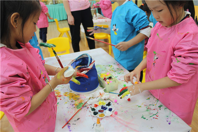 小朋友們除了本真的天性以外,還有無(wú)限的想象力。不同于以往的紙上作畫(huà),美墩苑幼兒園的張老師讓小朋友們?cè)谑直凵洗竽憚?chuàng)造,體驗(yàn)不一樣的創(chuàng)作樂(lè)趣。這種與眾不同的繪畫(huà)方式也是此次園所向觀(guān)摩隊(duì)伍展示的一種新型教學(xué)方式——手型彩繪。