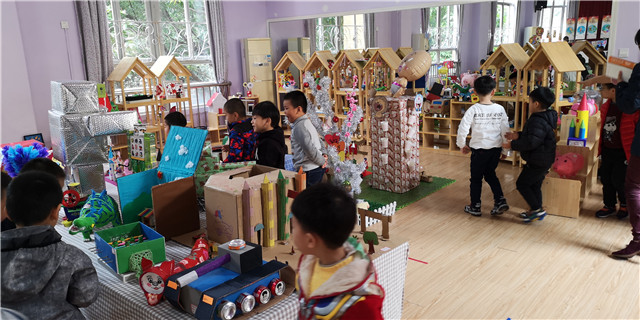 在前期的準備過程中,老師們先讓家長和小朋友通過多種渠道、欣賞各種利用廢舊紙箱制作的手工作品,在發(fā)現(xiàn)創(chuàng)意美的同時,調(diào)動小朋友們的制作興趣,激發(fā)制作靈感。正所謂“磨刀不誤砍柴工”,在動手制作前還請小朋友們和家長談一談創(chuàng)作的設想。當一切準備就緒,親子協(xié)作就開始啦!每一位家長與幼兒分工合作,老師們從旁觀察,適時指導。