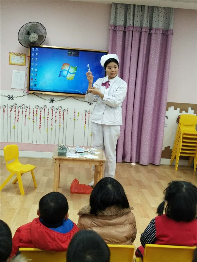 護(hù)士老師給小朋友們介紹的相關(guān)醫(yī)學(xué)小知識(shí),為了讓小朋友們體驗(yàn)不一樣的上課形式,護(hù)士老師還設(shè)置了醫(yī)院場(chǎng)景,讓小朋友們來扮演小醫(yī)生、小護(hù)士,學(xué)著用聽診器來聽小朋友的心跳?;顒?dòng)中小朋友們都表現(xiàn)得很好,認(rèn)真聽講、踴躍發(fā)言,在邊玩邊學(xué)的過程中積累了豐富的醫(yī)學(xué)知識(shí)。