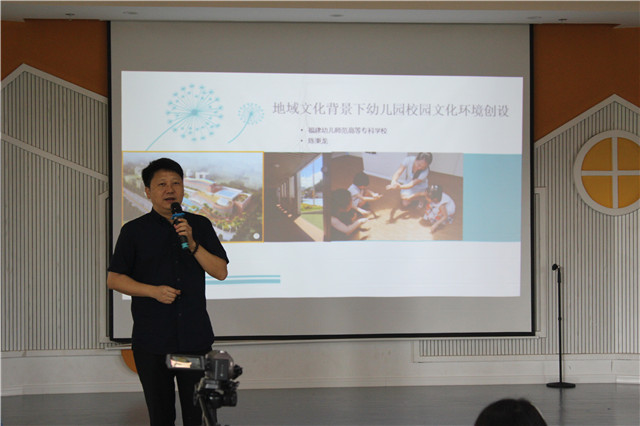 為此,我們請(qǐng)來(lái)了福建幼兒師范高等??茖W(xué)校-陳秉龍教授為大家講授《地域文化背景下幼兒園校園文化環(huán)境創(chuàng)設(shè)》。課程主要圍繞了幼兒園環(huán)境創(chuàng)設(shè)存在的問(wèn)題、什么是幼兒園校園文化環(huán)境、幼兒園環(huán)境創(chuàng)設(shè)應(yīng)遵循的原則、地域文化背景下幼兒園環(huán)境創(chuàng)建及幼兒園環(huán)境創(chuàng)設(shè)中的材料運(yùn)用五個(gè)方面展開(kāi),讓全體教師對(duì)幼兒園環(huán)境創(chuàng)設(shè)有了更深刻的認(rèn)識(shí)。