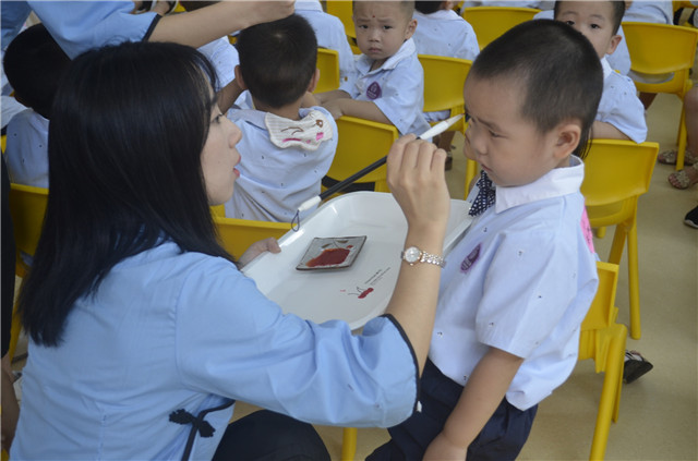 朱砂啟智——“開天眼”,點(diǎn)朱砂啟智當(dāng)中的“痣”通“智”,意為開啟智慧。在古代,學(xué)童入學(xué)讀書前,都會有啟蒙師長用紅色的朱砂點(diǎn)在孩子的眉心間。朱砂一點(diǎn)紅,點(diǎn)亮心中千盞燈,也祝福我們所有的學(xué)子們能夠從此“眼明心亮,發(fā)奮讀書”,帶著對自己的小小夢想、帶著父母的期待、帶著老師的關(guān)愛,跨入學(xué)堂。
