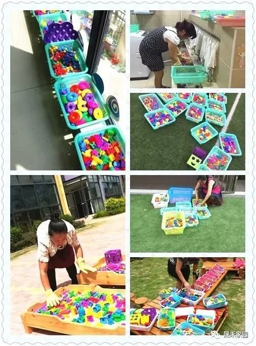 四、幼兒玩具進(jìn)行定期消毒,班級(jí)地板用84消毒液按比例兌水拖地