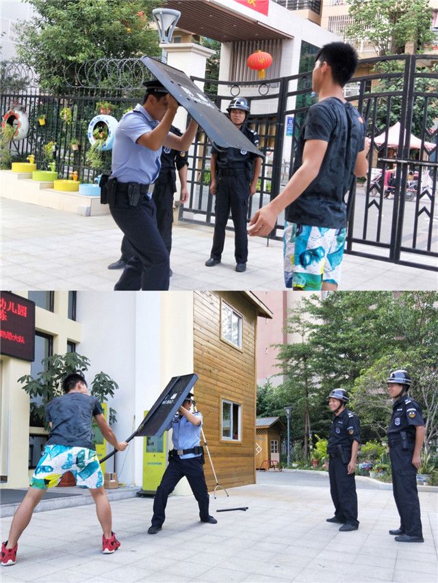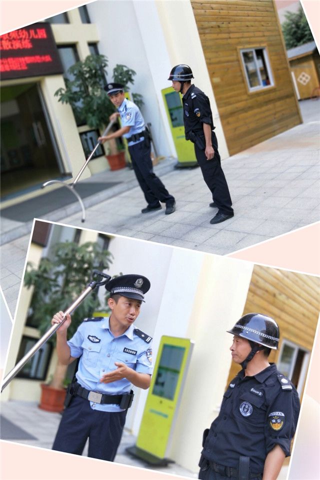 接著郭警官還對幼兒園保安進(jìn)行演練前的實(shí)戰(zhàn)培訓(xùn)。他向保安們講解了反恐怖防范知識及應(yīng)對方法,并現(xiàn)場演示了警棍、警用鋼叉、防護(hù)盾牌等防御器材的功能及正確使用方法。