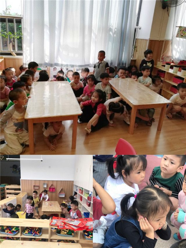 聽到警鈴聲,下渡街道港垱社區(qū)的志愿者們也紛紛趕到現(xiàn)場支援。而老師們也在聽到警鈴的第一時間,迅速組織幼兒向教學(xué)樓各自班級方向逃離,引導(dǎo)孩子有序地躲在班級的桌底下、靠墻角落等。在確保每個幼兒進(jìn)入班級后,帶班教師迅速關(guān)緊大門,鎖上窗戶,并用重物頂住前后門,防止“歹徒”闖入。