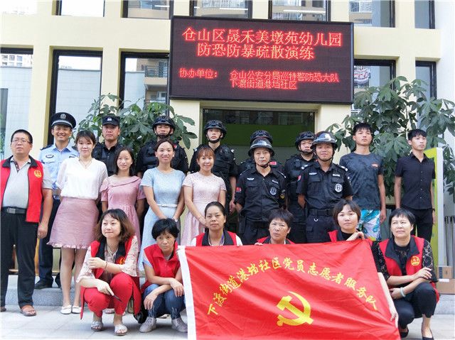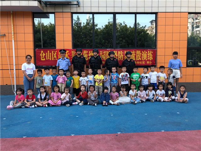 為了提高全體師幼及安保人員處置突發(fā)暴力事件的應(yīng)急能力,10月9日下午,晟禾美墩苑幼兒園聯(lián)合倉山公安分局巡特警反恐大隊(duì)和下渡街道港垱志愿者們舉行了一場別開生面的警民園三方聯(lián)動校園防恐防暴疏散演練活動。
