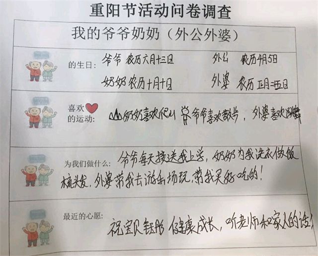 日復一日,孩子們從呱呱落地到牙牙學語,現(xiàn)在已然成長為一個“小大人”,這一路的陪伴是幸福的,也是辛苦的。漸漸變多的白發(fā),慢慢彎下的腰,追逐時變得緩慢的步伐......讓我們一起給爺爺奶奶、外公外婆捶捶背、捏捏腿吧,抱抱他們,再道一聲:“您辛苦了!”