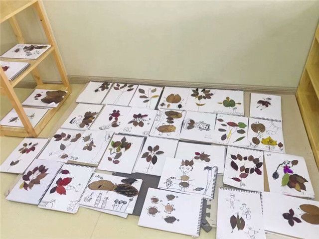 可愛的孩子們還在公園里撿來了許許多多的落葉,將它們制作成漂亮的插畫、書簽......