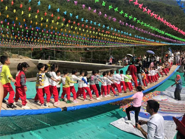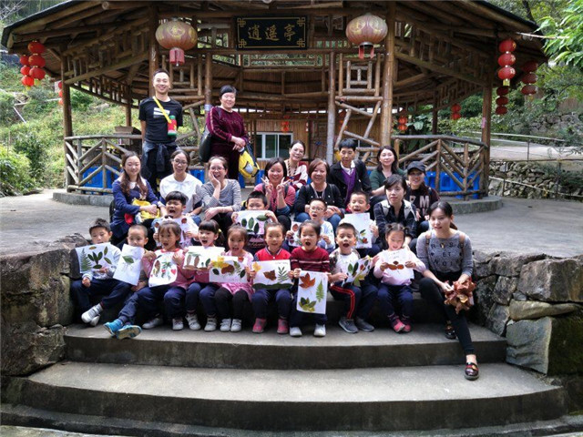 水谷瑤民俗景區(qū)位于距福州市區(qū)50公里的閩侯縣白沙鎮(zhèn),山清水秀,房屋建筑就地取材以毛竹建筑為特色,山寨中云集了傣、佤、壯、苗、哈尼、布依等多個少數(shù)民族,不同的風(fēng)土人情有著別具特色的民俗演藝!進(jìn)入悠幽谷,小朋友們便迫不及待地前往賞龍?zhí)镀俨夹蕾p美景,沿途,為了發(fā)展幼兒的觀察力、想象力及審美能力,老師給小朋友們布置一個特別的任務(wù):收集秋天的落葉,進(jìn)行DIY設(shè)計。