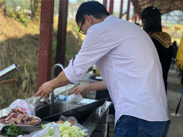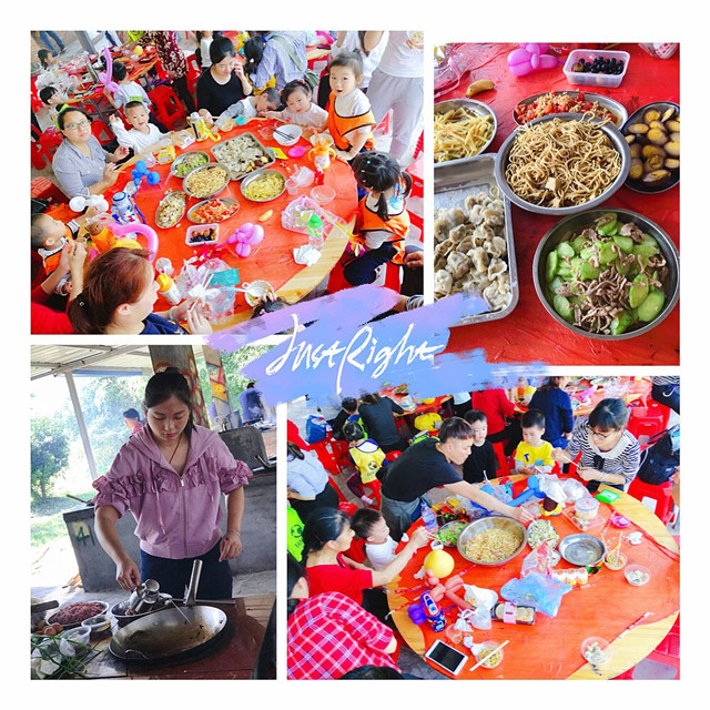 在小朋友們玩耍結(jié)束,休息的時候,勤勞能干的爸爸媽媽們已經(jīng)開始為大家準(zhǔn)備豐盛的午餐啦!作為同樣勤勞能干的寶寶,小朋友們當(dāng)然不能錯過這個可以“大展身手”的好機(jī)會啦!“媽媽、媽媽,我來幫你~~”