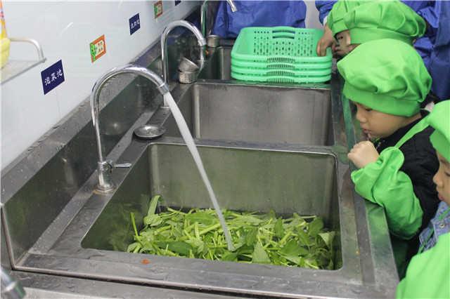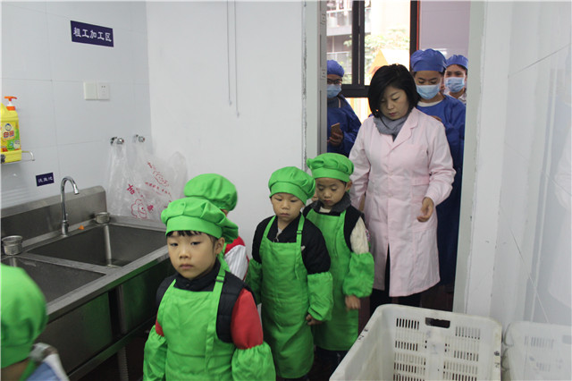“全副武裝”后,在食堂的工作人員的帶領(lǐng)下,家長(zhǎng)代表和小朋友們進(jìn)入后廚實(shí)地考察,了解后廚的食品安全規(guī)范步驟。干凈、整潔、有序的后廚環(huán)境及工作流程給家長(zhǎng)們留下了深刻的印象。