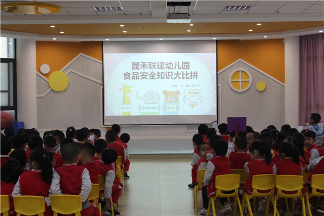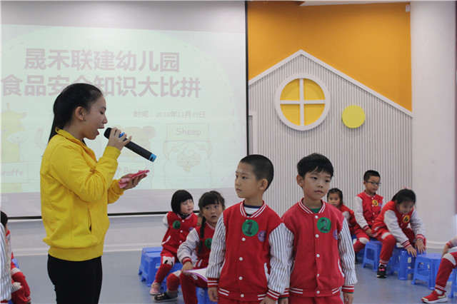 食品安全的維護(hù)不能僅靠某一個(gè)人,這是我們大家共同的責(zé)任與義務(wù)。周一一早,晟禾聯(lián)建幼兒園門(mén)口上方的LED就亮起了“創(chuàng)建省食品安全區(qū),萬(wàn)家共享食品安全”的宣傳標(biāo)語(yǔ)。隨后,全園師生利用周一晨會(huì),啟動(dòng)了“食品安全宣傳周”儀式。在班上,老師們向每一個(gè)小朋友發(fā)起倡議:“我們都是食品安全的受益者,讓我們行動(dòng)起來(lái),小手拉大手,和爸爸媽媽一起,積極參與到食品安全創(chuàng)建中?!?