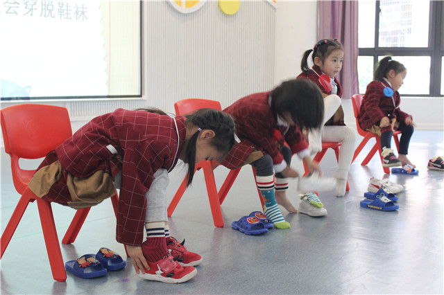 穿鞋是每一個(gè)小朋友每日都要接觸的活動(dòng),而小班小朋友的年齡小,生活自理能力比較弱,平常家里人也包辦的比較多,因此小班小朋友的自理能力一直得不到鍛煉和提高。此次小班的生活自理能力比賽選擇的就是穿鞋子,從比賽的結(jié)果可以看出,小朋友們?cè)谟變簣@老師的指導(dǎo)下,鞋子穿反、穿不進(jìn)的情況明顯得到改善,自理能力得到了提高,自我服務(wù)意識(shí)也得到了提升!