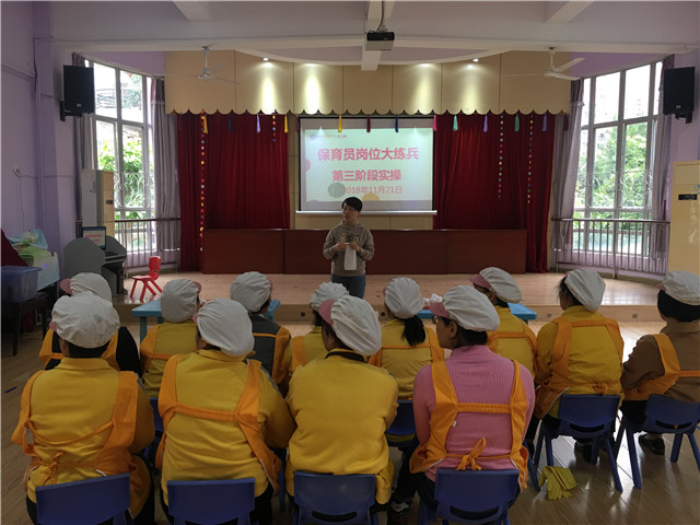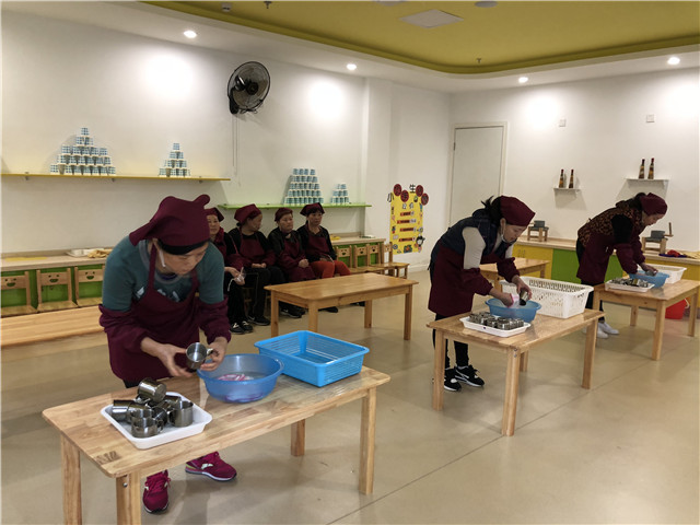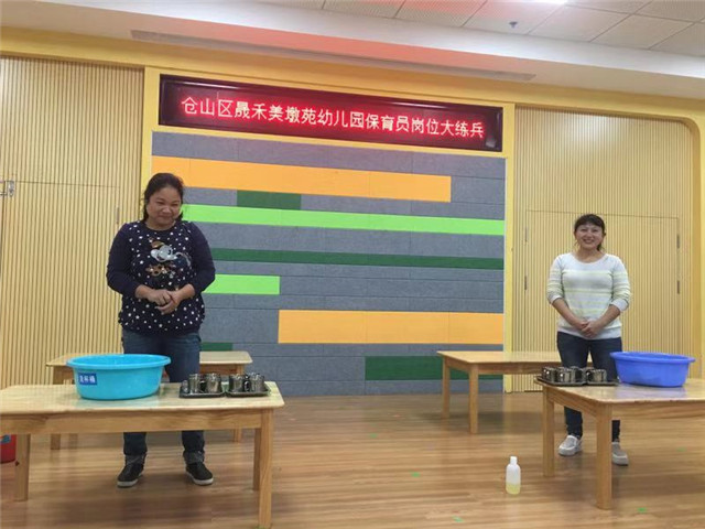 幼兒園后勤管理工作是幼兒園管理工作的重要組成部分,是幼兒園教育教學(xué)工作得以順利進(jìn)行的基礎(chǔ)和保障,是確保學(xué)校安全與穩(wěn)定的重要環(huán)節(jié)。為進(jìn)一步提升集團(tuán)各園后勤人員的專業(yè)技能和整體素質(zhì),促進(jìn)后勤標(biāo)準(zhǔn)化、規(guī)范化的發(fā)展,同時(shí)也為大家提供一個(gè)學(xué)習(xí)交流平臺(tái)和自我展示的舞臺(tái),晟禾教育集團(tuán)根據(jù)各園實(shí)際情況,有針對(duì)性地選擇了相關(guān)考核內(nèi)容,組織各園開(kāi)展后勤崗:保育員和食堂人員崗位大練兵活動(dòng)。